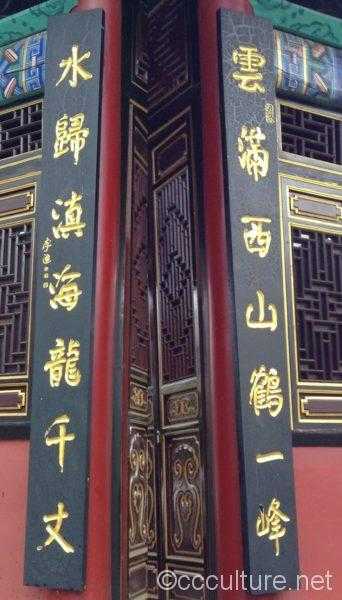 綺麗に整備された立派な建物だ。入口の両側の柱には対聯(ついれん)が掛けられている。